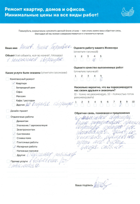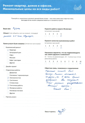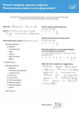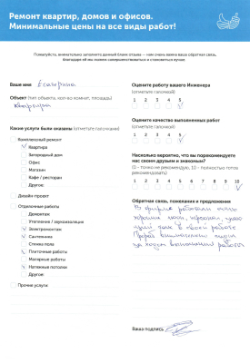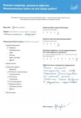 Разделение труда + IT-решения = ремонт по привлекательной цене. «Ремонт по себестоимости» – это лозунг нашей фирмы, потому что мы не повышаем цену, а вместо этого качественно делаем свою работу и заказчики нас ценят.